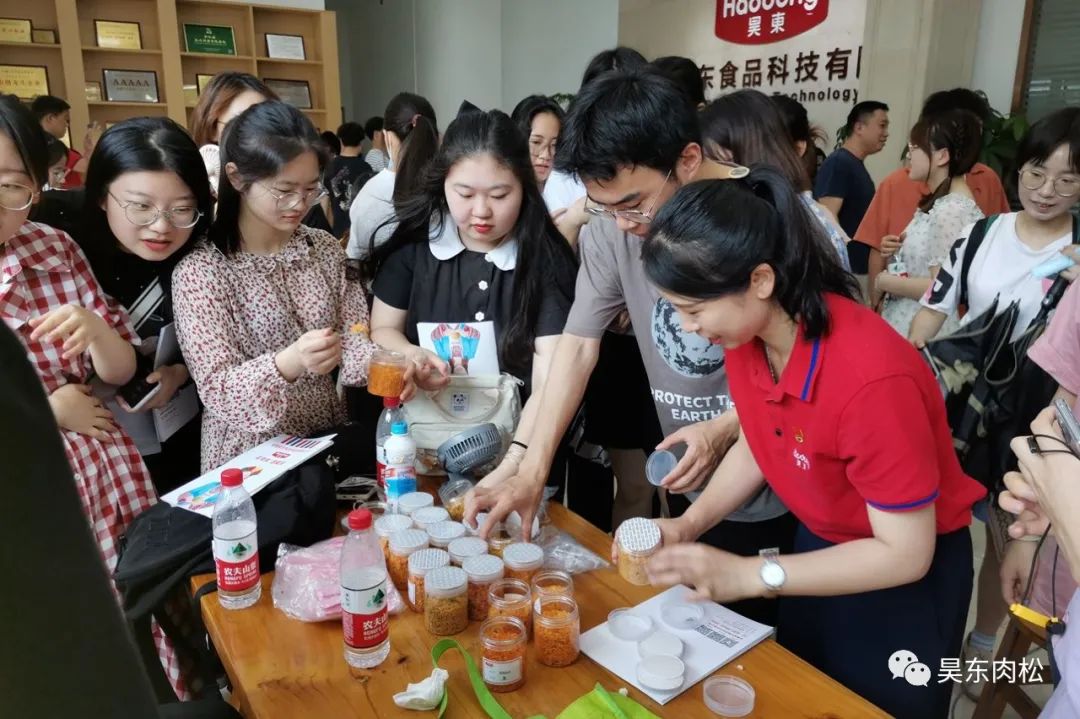 此次參觀,主要給學(xué)生們展示了公司的肉松生產(chǎn)流程以及肉松烘焙技術(shù)。其后,在公司技術(shù)人員的陪同講解下,帶領(lǐng)學(xué)生們參觀了食品生產(chǎn)車間,進(jìn)一步了解了肉松制作的相關(guān)技術(shù)及應(yīng)用市場。